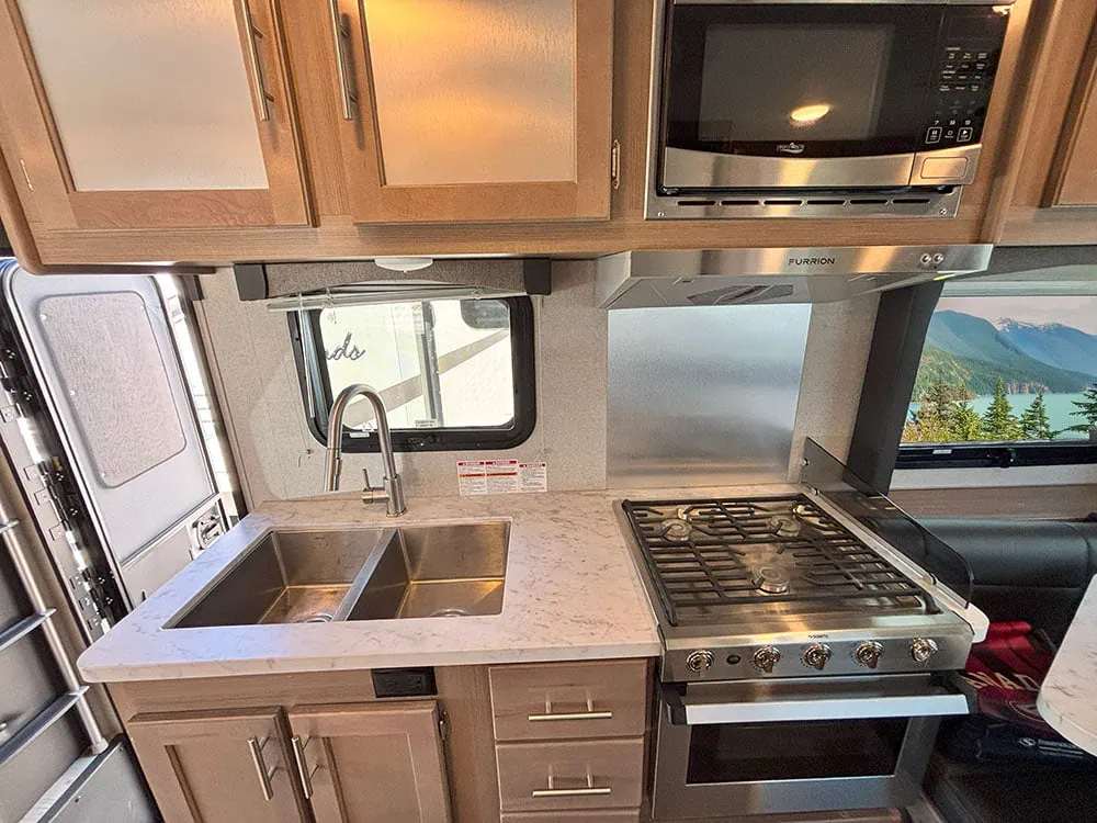 When you want to get around with ease then a small motorhome is ideal for you. These units are furnished with a kitchenette, dining area, bathroom, an overcab queen sized bed and a dinette that converts to a bed. A small motorhome is perfect for a couple or small family.
