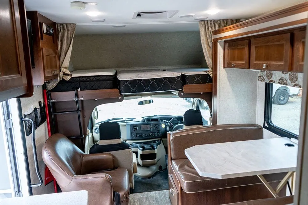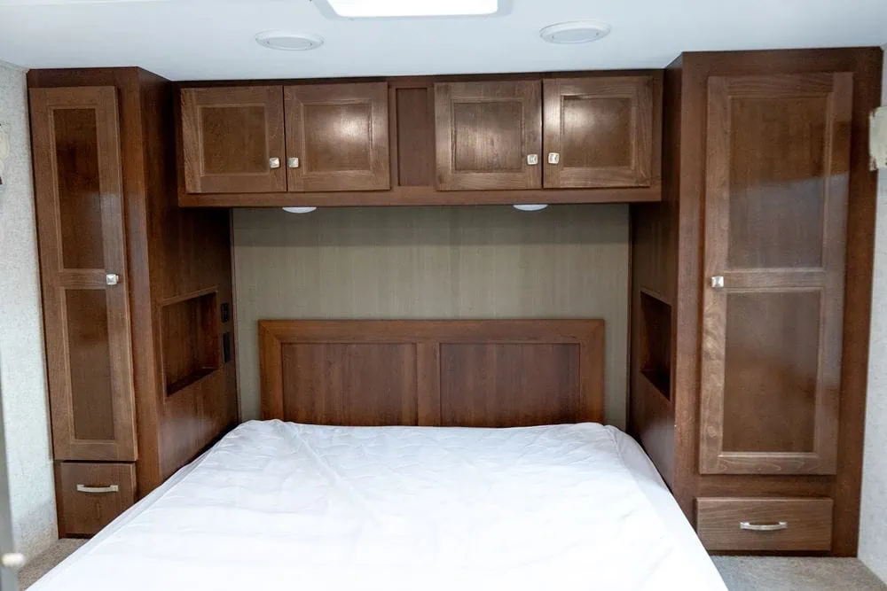 Spacious home away from home. When desire plenty of space or you have a large group then a large-sized motorhome is ideal for you. These units are furnished with a kitchenette, dining area, foldout couch, bathroom, queen sized bed and over-the-cab queen sized bed. A large-sized motorhome is perfect for a large group or family