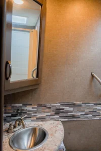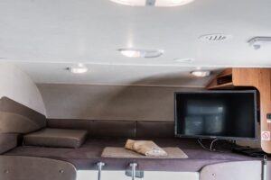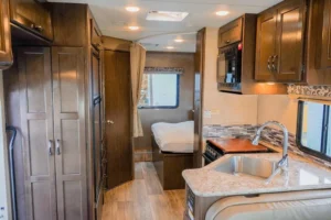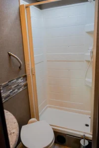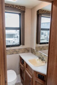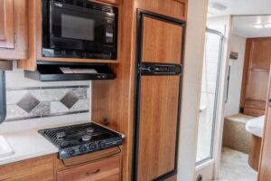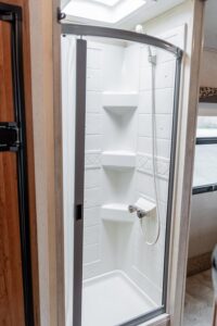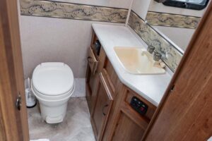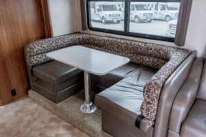 - Sleeps up to 7 with queen bed, cab-over bunk, jackknife sofa, and dream dinette. Includes one slide-out, full kitchen, private bathroom, Onan 4,000W generator, 13,500 BTU A/C, 30,000 BTU furnace, 18′ power awning, and large exterior storage. Adventure-ready and family-friendly.