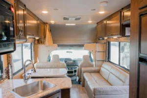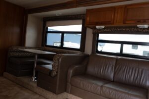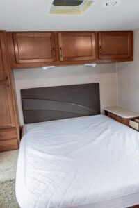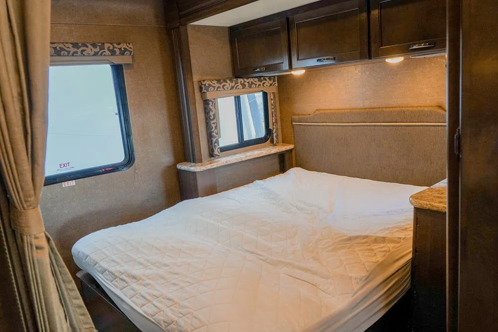 - 7 seatbelts, sleeps 6. Furnished with a kitchenette, dinette that goes into a bed, bathroom, over the cab queen sized bed and a bedroom with a walk-around queen-sized bed. Slide-out. Electric awning. Auto Ignite Furnace, A/C. Complete water system including Fresh Water Tank. Auto Ignite Water Heater. 3 piece Bathroom: toilet, sink, shower with tub. Refrigerator with separate freezer. Propane Cooktop, Oven. Built-in Generator. Everything has been maintained and in good working order.